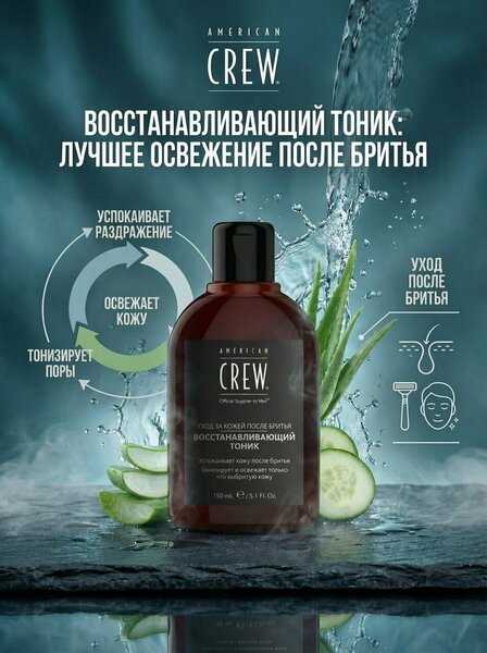 Лосьон после бритья от American Crew успокаивает кожу, тонизирует и освежает после процедуры бритья. Средство смягчает раздражение, увлажняет участки с покраснением, закрывает поры и дарит ощущение свежести и комфорта. Подходит для всех типов кожи. Преимущества: Алоэ Вера — снимает раздражение и успокаивает кожу. Аллантоин — делает поверхность кожи более гладкой и мягкой. Ментол — обеспечивает охлаждающий эффект и чувство свежести. Bacillus Ferment (Keratoline) — ферментный эксфолиант, помогает предотвратить врастание волос. Способ применения: Наносите мягким массажем на только что выбритую кожу.