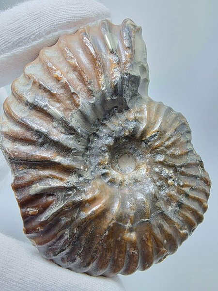 Аммонит в породе. Место находки Россия, Карачаево-Черкесская республика. Размер - 75х55х23 мм. Вес 144 грамм. Возраст примерно 113-125 млн. лет. Аммониты - подкласс головоногих моллюсков со спирально закрученными раковинами, разделенными на отдельные камеры. Близкие родственники наутилусов. Возникли в девонском периоде Палеозоя, вымерли в конце мелового периода. Раковины аммонитов, особенно гетероморфные, очень ценятся коллекционерами за красоту и относительную редкость. Они бывают украшены ребрами, шипами и гребнями самой разнообразной формы. Аммониты получили свое название от имени древнеегипетского бога Амона. Его всегда изображали с рогами, напоминающими спираль раковин аммонита. В Древней Греции аммонитов почитали по другим причинам. Из века в век от поколения к поколению переходило знание, что спиральная ракушка обладает чудесными свойствами. Аммонит считается приносящим удачу камнем. Его магические свойства связаны с морским происхождением. Амулеты из аммонита защищают людей, связанных с водой, и приносят удачу в бизнесе и повседневных делах. Спиралевидная форма камня, соответствующая законам золотого сечения, упорядочивает жизнь человека и помогает уловить закономерность в цепи событий. Семицветные камни процветания приносят семейное счастье и благосостояние, а также привлекают удачу в делах и открывают денежный поток. Камень натуральный, поэтому может иметь естественные трещинки, включения, неровности поверхности, рисунка, цвета, что подтверждает и подчеркивает его природное происхождение. Цвет на фото может несколько отличаться от цвета в реальности за счет разных настроек мониторов и особенностей освещения при фотографировании.