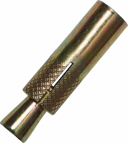 Анкеры забивные с клином (конусообразная гайка) изготовлены из высококачественной стали. Обеспечивают более высокие вырывные нагрузки по сравнению с дюбелями и позволяют крепить различные элементы и конструкции к несущим основаниям. Конструкция анкера состоит из нераспорной части, которая не участвует в закреплении, и распорной (рабочей) зоны, которая изменяет свои размеры (форму).