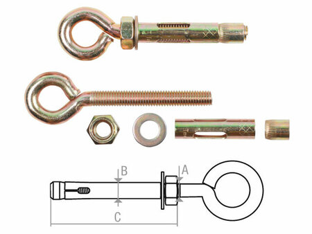 Анкер с кольцом STARFIX используется для крепления нагруженных и тяжеловесных конструкций, таких как балки, опоры, стойки, полки, шкафы и т. п.