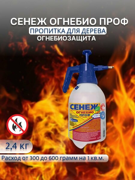 Способ применения Средство Сенеж Огенибио Проф наносят на очищенную от грязи, пыли, коры, луба, прочих покрытий поверхность древесины кистью, валиком, распылителем при температуре воздуха не ниже +5 С, а также погружением, вымачиванием или автоклавированием. Нанесение кистью, валиком, распылителем проводят в 2-3 приема с интервалом 20-40 минут, обеспечивая нормируемый суммарный расход. Вымачивание или пропитку в автоклаве проводят до достижения нормируемого расхода. Не обрабатывать мерзлую древесину! Не смешивать с другими составами. Перед применением – перемешать. Расход Суммарный расход для обеспечения огнезащитных свойств по I группе (трудногорючая древесина) — не менее 600 г/м2 (1,6-1,7 м2/кг); расход для обеспечения огнезащитных свойств по II группе (трудновоспламеняемая древесина) и биозащиты – не менее 300 г/м2 (3,0-3,5 м2/кг).