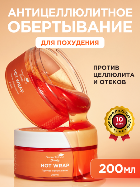 Антицеллюлитное горячее обертывание для тела от GUARCHIBAO - это эффективное средство для борьбы с целлюлитом, лимфодренажа и коррекции фигуры. С уникальной комбинацией ароматических компонентов апельсина и корицы, оно не только улучшает состояние кожи, но и создает приятную атмосферу в вашей домашней спа. Этот продукт подходит для всех типов кожи, включая сухую и чувствительную, и может использоваться как в ванне, так и при душе. Горячее обертывание от Guarchibao обладает уникальной формулой, которая способствует улучшению состояния кожи. Горячее обертывание идеально подходит для применения в домашних условиях. Главное действие связано с прогревающим эффектом, который помогает ускорить процесс микроциркуляции. Это важный аспект в борьбе с лишними жировыми отложениями и улучшении внешнего вида кожи. Обертывание антицеллюлитное помогает вывести токсины и улучшить обмен веществ. Используя горячие обертывания для похудения, вы получаете возможность насладиться расслабляющими процедурами. Эффект тепла создает комфортные условия и способствует глубокому проникновению активных компонентов через поры. Такой подход позволяет добиться видимых результатов за короткий срок. Регулярное применение этого средства позволит вам не только достичь желаемого результата, но и поддерживать его долгосрочно. Благодаря натуральным ингредиентам состояние кожи значительно улучшается, а силуэт становится более подтянутым. Способ применения: Нанесите обертывание на очищенную влажную кожу, желательно после применения скраба, на проблемные участки тела равномерным тонким слоем. Наденьте штаны для обертывания либо обернитесь пищевой пленкой плотно, но не туго и подождите 10-50 минут. Снимите остатки обертывания сухой салфеткой и осторожно смойте прохладной водой.