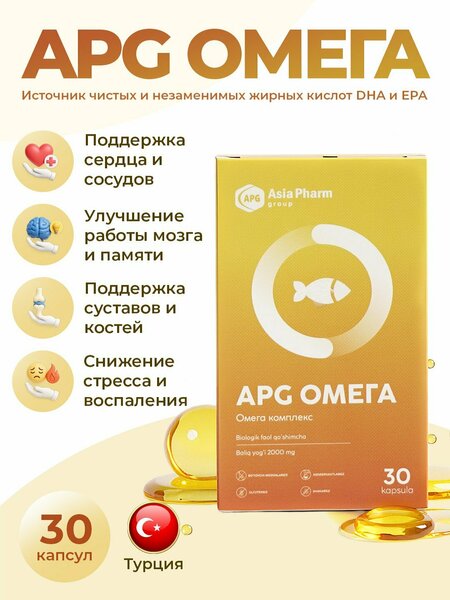 APG Омега - это комплекс витаминов, минералов и добавок, разработанный для поддержания здоровья и благополучия. Он содержит все необходимые питательные вещества, которые помогут вам оставаться активными и здоровыми. Омега-3 жирные кислоты, содержащиеся в APG Омега, способствуют улучшению работы сердечно-сосудистой системы, поддерживают здоровье мозга и нервной системы. Минералы, такие как магний, кальций и железо, помогают поддерживать здоровье костей, мышц и кожи. APG Омега также содержит витамины группы B, которые способствуют здоровью нервной системы и помогают поддерживать уровень энергии. Витамин D, который помогает усваивать кальций, также включен в состав. Благодаря APG Омега, вы можете быть уверены в том, что получаете все необходимые питательные вещества для поддержания своего здоровья. В целом, APG Омега - это отличный выбор для тех, кто хочет поддерживать свое здоровье и благополучие.