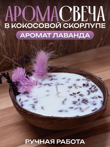 Аромасвечи ручной работы в кокосовой скорлупе – милый подарок для уюта и гармонии из натурального какосового воска Наши свечи в кокосовой скорлупе – это не просто источник света, а настоящий элемент уюта и тепла в вашем доме. Каждая свеча сделана вручную с любовью и вниманием к деталям, чтобы подарить вам неповторимый аромат и атмосферу комфорта. В ассортименте представлены разнообразные запахи, среди которых особенно выделяются аметист, амбра, пачули и сладкий рафаэлло. Аромат аметиста наполнит пространство таинственностью и спокойствием, амбра добавит нотки роскоши, пачули – глубину и земляные оттенки, а нежный рафаэлло подарит сладкий, воздушный шлейф, напоминающий любимые конфеты. Эти свечи – идеальный подарок для мамы, бабушки, подруги или сестры. Милый дизайн в натуральной кокосовой скорлупе делает их не только приятным, но и стильным презентом, который подчеркнет вашу заботу. Ручная работа гарантирует уникальность каждого экземпляра, а натуральные материалы делают свечи безопасными и экологичными. Зажгите свечу, чтобы создать уютную атмосферу вечера, романтического ужина или просто для расслабления после долгого дня. Сладкий аромат, красивый внешний вид и натуральная основа – всё это делает наши свечи в кокосовой скорлупе желанным аксессуаром для любого интерьера. Подарите близким частичку тепла и гармонии с этим нежным и душевным подарком. Выбирайте свой любимый аромат – аметист для медитации, амбру для уюта, пачули для grounding-эффекта или рафаэлло для сладкого настроения! Аромасвечи ручной работы – это больше, чем просто свеча, это эмоция, застывшая в кокосовой скорлупе.