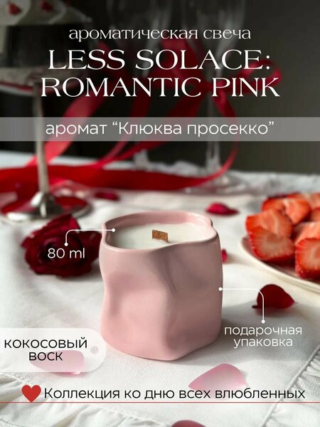Изысканная ароматическая свеча "Less solace: romantic pink" от LS Decor создана специально ко Дню всех влюбленных, украшенная гипсовым подсвечником, является вершиной стиля и элегантности. Этот акцент интерьера поражает утонченностью исполнения внешнего вида, напоминая о высоких стандартах роскоши. В основе лежит премиальный кокосовый воск, который обеспечивает не только долгое и стабильное горение, но и таит в себе глубокий аромат, составленный из чистых натуральных компонентов. Подсвечник, литой из высокопрочного гипса, отличается изяществом формы и неповторимостью текстуры, являясь не просто ремесленным изделием, а истинным примером скульптурного искусства. Экологичность же производства подчеркивает философию LS Decor о гармоничном сочетании человека и природы, предоставляя возможность наполнить ваше пространство красотой, не вредя при этом окружающей среде. Объем свечи: 80 гр Время горения: до 10-ти часов Состав: высокопрочный гипс с минеральными добавками, натуральный кокосовый воск, аромат без примесей и фталатов, деревянный фитиль из шпона американской вишни. Аромат: клюква просекко Верхние ноты: Цитрусовые , Клюква; Средние ноты: шампанское; Базовые ноты: Мускус, Пралине. Ароматические свечи от LS Decor создаются вручную с любовью, трепетом и непререкаемым вниманием к самым мелким деталям. В процессе их изготовления мы останавливаем свой выбор исключительно на высококачественных материалах.