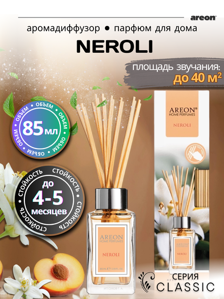 Аромадиффузор Areon Perfume Classic 85 мл — стойкий освежитель воздуха для дома и офиса, 8 ароматов на выбор. Аромадиффузор Areon Perfume Classic — это универсальный и стильный способ наполнить ваш дом или офис изысканным ароматом, который радует, расслабляет и создаёт уютную атмосферу. Продукт сочетает в себе высококачественные парфюмерные масла, продуманный дизайн и удобство использования. Объём 85 мл обеспечивает ароматизацию помещения до 20 недель, а ротанговые палочки в комплекте равномерно распространяют аромат по всей комнате. Аромадиффузор работает без огня и электроэнергии, что делает его безопасным и экологичным решением для любого пространства.