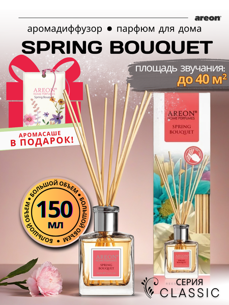 Ароматический диффузор для дома Areon Classic, аромат Spring Bouquet, 150 мл + аромасаше в подарок