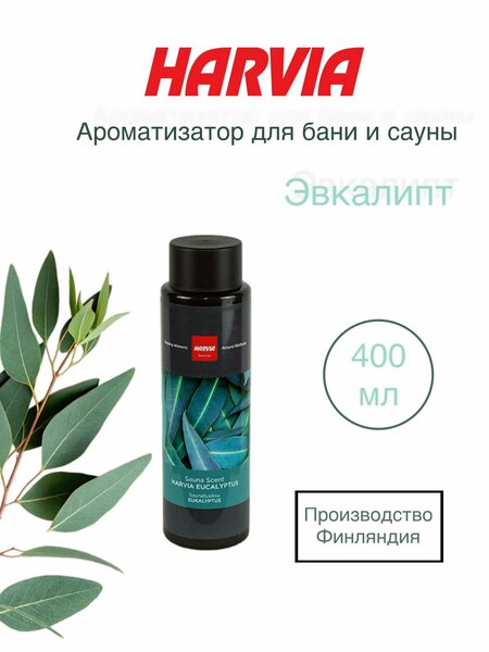 Ароматизатор для сауны HARVIA (Харвия) Эвкалипт, 400 мл благоприятно действует на органы дыхания и нервную систему человека. Ароматизатор полностью натуральный и выпускается в пластиковых бутылках объемом 500 мл. Добавляет средство можно вручную или залить необходимое количество в парогенератор. Ароматизаторы HARVIA - это линейка специальных ароматизаторов пара для парообразователей. Продукт полностью готов к использованию – достаточно добавить небольшое его количество в резервуар парообразователя. Помещение моментально наполниться свежим ароматом, который поможет настроиться на нужный лад.