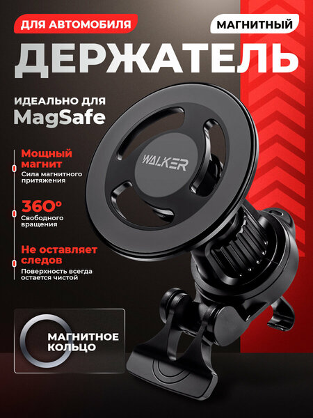 Держатель для телефона в машину магнитный на воздуховод, WALKER, автоаксессуар, подставка в автомобиль для планшета, черный
