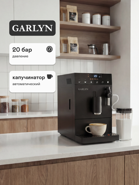 Автоматическая кофемашина GARLYN L600 с капучинатором. Регулировка температуры и крепости кофе. 4 автоматические программы