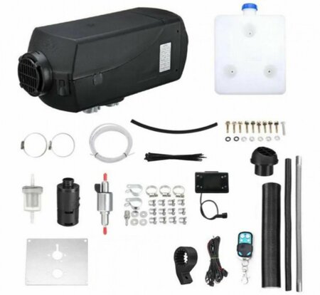 Автономный обогреватель 2KW, воздушный, дизельный, 2000 Вт, 24В, чёрный матовый. Автономный воздушный отопитель, сухой фен, аналог вебасто, планар и др. Эффективно используется для обогрева автотранспорта или небольших помещений. Очень жаркий и надёжный, капризен к низкосортному топливу. Немецкие технологии, производство Китай. -Тепловая мощность 2.5KW. -Напряжение 24V. -Отопитель работает на дизельном топливе, расход топлива: 0.1 - 0.3 л/ч. -Бак 7 литров. -Климат-контроль. -Регулировка по мощности. -Дистанционное управление. -Полный комплект для установки.