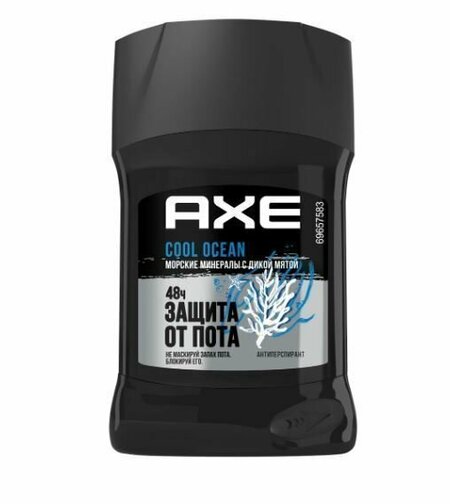 Любимый формат антиперспирант-карандаш представлен в крутой новинке от AXE – антиперспиранте-карандаше Cool Ocean. Аккорды морских минералов и дикой мяты –притягательный дерзкий 100% топовый* акватический аромат, который наверняка придется тебе по вкусу. Технология против пота и запаха эффективна до 48 часов** и позволяет коже дышать. Не маскируй запах пота, блокируй его с AXE. Будь неотразим и безупречен.*в линейке продукции Unilever. **клинически протестировано Unilever.
