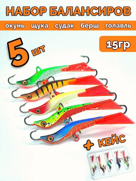 Представляем вашему вниманию набор блесен балансиров для отвесной ловли с лодки или для зимней рыбалки со льда, состоящий из пяти приманок, удобно уложенных в кейс. Эти высококачественные блесны идеально подходят для ловли таких рыб, как окунь, щука или судак. Каждая блесна в наборе тщательно разработана для эффективной игры под водой, что значительно увеличивает шансы на успешный улов. Балансиры с весом 15 граммов прекрасно подходят как для новичков, так и для опытных рыбаков. Они позволят вам легко регулировать глубину погружения и ловить рыбу, даже в самых сложных условиях. Этот рыболовный набор станет отличной добавкой к вашему снаряжению и поможет вам сделать рыбалку более продуктивной и увлекательной. Набор балансиров — это не только функциональность, но и стиль. Яркие цвета и привлекательный дизайн приманок привлекают внимание рыбы, делая их незаменимыми в вашем арсенале. Каждая блесна в комплекте имеет уникальную расцветку, что позволяет варьировать тактику ловли в зависимости от условий. Если вы ищете идеальный подарок для рыбака, данный набор станет отличным выбором. Он компактно помещается в специальный кейс, что обеспечивает удобство транспортировки и хранения. Этот набор блесен окунет вас в мир зимней рыбалки, даруя невероятные ощущения от процесса ловли.