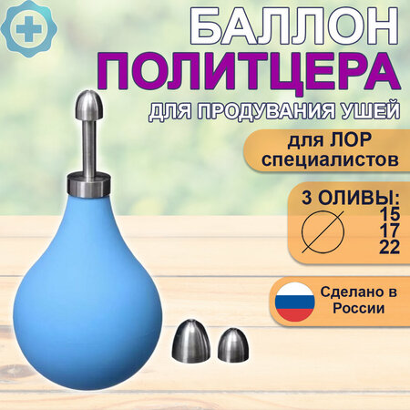 Баллон Политцера «Альпина Пласт» предназначен для использования в лечебных учреждениях врачом оториноларингологом (ЛОР) для продувания евстахиевых труб. Продувание по Политцеру, представляет собой лечебное и диагностическое отоларингологическое мероприятие - введение воздуха под давлением через слуховую (евстахиеву) трубу в барабанную полость. Применяется при лечении острых и хронических воспалений среднего уха, заболеваний слуховой трубы. В комплекте поставки: 3 оливы самых используемых диаметров (15, 17 и 22 мм), трубка-переходник, груша из ПВХ. Поставляется в прочной картонной коробке, пригодной для длительного хранения.