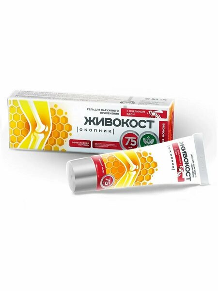 живокост (окопник) с пчелиным ядом гель-бальзам д/тела 75мл. активизирует процессы обмена веществ, способствует ускорению восстановления поврежденных тканей, обладает противовоспалительным действием, активизирует микроциркуляцию. в качестве вспомогательного средства при болях в суставах, для предупреждения возрастных изменений в суставах. вода специальной очистки, хондроитина сульфат, глюкозамин, экстракт живокоста, масло чайного дерева, пчелиный яд, глицерин, аристофлекс, бронопол.