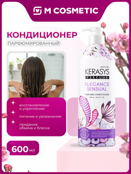 Бальзам KeraSys Elegance Sensual - это кремовый продукт для ухода за волосами, который обеспечивает восстановление структуры волос, наполняя их силой и блеском. Ухаживающая формула бальзама разглаживает пряди, делая их мягкими и шелковистыми. Кремовая текстура легко распределяется по волосам, глубоко питает и укрепляет их. Волосы становятся более послушными, а элегантный и чувственный аромат остается надолго, словно легкий парфюмированный шлейф. Состав бальзама включает в себя воду, цетеариловый спирт, стеариловый спирт, диметикон, циклопентасилоксан, стеарамидпропил диметиламид, ароматизатор, дикаприлил карбонат, хлорид цетеаридимония, глутаминовую кислоту, бензиловый спирт, бехентримония хлорид, пантенол, пропиленгликоль, цетеарет-20, пантетил этиловый эфир, амодиметикон, масло ши (карите), оливковое масло. Способ применения бальзама прост: после применения шампуня нанесите небольшое количество средства на влажные волосы, сделайте легкий массаж и тщательно смойте. Особенности бальзама включают его ежедневное применение, отсутствие искусственных красителей, формальдегида, спирта, минеральных масел, парафина, парабенов, аммиака, глютена, формалина, ГМО, продуктов животного происхождения, петролатума, фталатов, кремния. Объем бальзама составляет 600 мл, что делает его экономичным в использовании. Продукт не тестируется на животных и обладает УФ-защитой. Бальзам KeraSys Elegance Sensual - это качественный и эффективный продукт для ухода за волосами, который обеспечит восстановление и укрепление волос, придаст им блеск, мягкость и шелковистость.