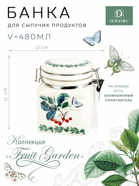 Коллекция Fruit Garden от Dolomite отличается своим уникальным дизайном и летним настроением, которое создает атмосферу ярких фруктов и зеленых листьев в саду. Каждый предмет имеет индивидуальный дизайн, добавляющий неповторимости и особого шарма вашей кухне. Благодаря этой коллекции вы сможете создать яркий, насыщенный образ вашей кухни, наполнив ее свежими и летними красками. В коллекции Fruit Garden представлен широкий выбор банок для хранения различных форм и объемов. Банки идеально подходят для хранения продуктов, приправ, сахара, муки и других необходимых вещей в вашей кухне. Крышки плотно закрываются, обеспечивая сохранность и свежесть продуктов на долгое время. Однако, важно отметить, что эту посуду нельзя мыть в посудомоечной машине и использовать в микроволновой печи. Для сохранения ее первоначального внешнего вида и долговечности, рекомендуется ручная мойка и аккуратное обращение с посудой. Керамическая посуда из коллекции Fruit Garden от Dolomite - это не только функциональный предмет, но и настоящее произведение искусства, которое добавит яркость и уют в вашу кухню. Позвольте себе окунуться в атмосферу летнего сада и насладиться красотой этой уникальной коллекции. Банка для сыпучих продуктов с клипсой "Fruit Garden", 480 мл, Dolomite Дополнительные подробности: На крышке есть силиконовый уплотнитель. Дизайн рисунка: фрукты. Комплектация: банка - 1 шт Рекомендации по использованию: СВЧ - Нет. ПММ - Нет. Размер штуки: 12х9,5х12 см Размер товара в упаковке: 13х10х13 см Материал: керамика. Вид упаковки: индивидуальная брендированная коробка. Керамическую банку с зажимом/застежкой можно использовать для: хранения сахара, специй, соли и перца, меда, сыпучих продуктов, чая, кофе. Емкость может применяться как: сахарница, солонка, перечница, медовница, банка для хранения.