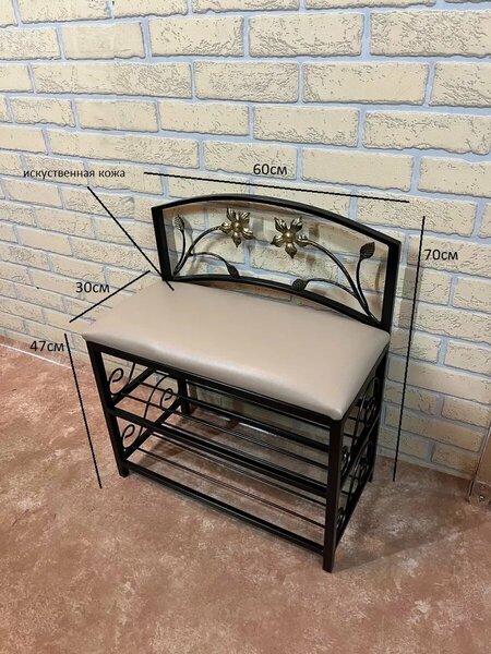 Кованая банкетка №04 изготовлена из качественных материалов. Металлический цельносварной каркас из профильной трубы. Вес изделия без упаковки - 12 кг. Габаритный: высота 70 см, ширина 80-70-60см-Выбот по фото , глубина 30 см. Описание: Кованые банкетка от производителя! Отличное качество, ручная работа! Санкт-Петербург. "Студия кованой мебели НиВа" Гарантия 10 лет! на металл. Ручная работа. Сварка используется по периметру сварных соединений, что значительно повышает прочность. Покраску используем порошковую, + патина (Италия) что значительно повышает износостойкость. Будем благодарны за Ваш отзыв!