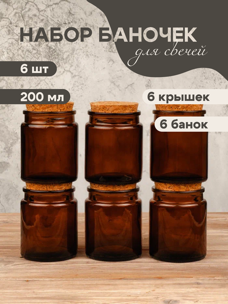 Представляем вам набор стеклянных баночек с пробковыми крышками 200мл коричневого цвета, созданный для того, чтобы дарить радость создания свечей своими руками. Стеклянная банка с крышкой — это идеальная форма для свечей, которая может стать как ярким акцентом, так и деликатным дополнением к домашнему уюту. Каждая баночка подобрана с заботой о качестве и функциональности. Мини баночки наполнят интерьер лёгкостью. Данные формы помогут воплотить в жизнь свои самые смелые идеи в творчестве и рукоделии. Банка для свечи станет эксклюзивным предметом набора для творчества рукоделие. Наш набор для создания свечей — это не просто инструменты, это вход в роскошный мир свечеварения, где каждый может стать создателем эксклюзивного произведения искусства. Форма для свечей позволит делиться вашей креативностью, вашей уникальной историей. Наши декоративные баночки также подойдут в качестве органайзера для рукоделия. Габариты баночки: Высота банки без крышки 8см Высота банки с крышкой 9см Диаметр дна 6,5см Диаметр верха внешний 6см Диаметр отверстия 5см