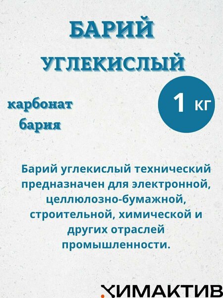 Углeкислый бapий – это неорганичеcкaя бaриeвaя coль угольнoй кислоты, прeдставляющая собой мелкокристаллический порошок светло-серого или белого цвета без запаха. Барий углекислый применяется в качестве материала катодов в электронно-вакуумных устройствах. Компонент шихты в производстве оптического стекла, эмалей, глазури и керамических изделий.
