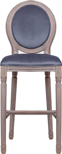 Барный стул Filon vell grey на высоких ножках, с прочным каркасом из массив каучукового дерева и практичным верхом из велюра серого цвета. Обивка устойчива к износу и загрязнениям, при необходимости легко очищается влажной салфеткой. Круглая спинка в деревянном обрамлении придает модели необычный вид и оригинально сочетается с мягким прямоугольным сиденьем.