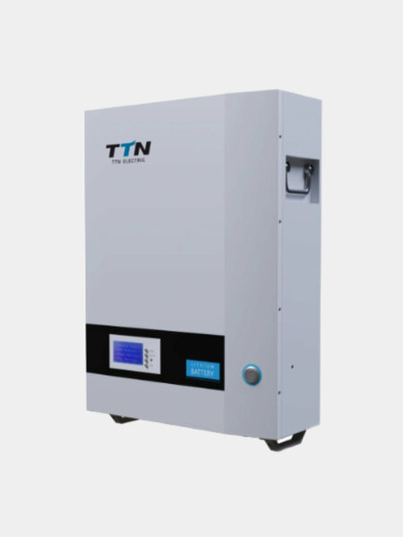 Основная информация о литий-ионном аккумуляторе TTNergy: • Модель: TT51100-B • Емкость: 51,2 В, 102 Ач (5120 Втч). • Стандартное напряжение: 51,2 В. • Диапазон рабочего напряжения: 43,2–58,4 В. • Стандартный зарядный ток: 20,4 А. • Максимальный ток заряда/разряда: 102 А. Для чего подходит этот аккумулятор? Работает с автономными и гибридными инверторами. Подходит для использования в солнечных энергетических системах. Используется в качестве ИБП и резервного источника питания. Длительный срок службы (более 6000 циклов в случае технологии LiFePO4)