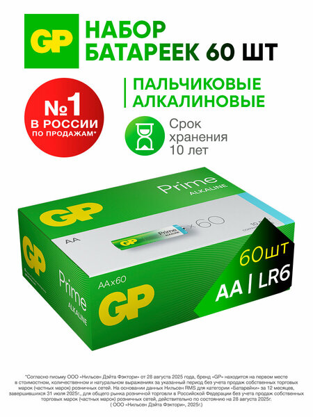 Батарейки Prime Alkaline бренда GP - это универсальный и надежный источник питания для различных электронных устройств. Они работают безупречно в самых разных ситуациях, делая вашу технику по-настоящему эффективной. Батарейки АА изготавливаются по новой формуле для более надежной и продолжительной работы устройств. Современные гаджеты стали неотъемлемой частью нашей жизни: MP3-плееры, наручные часы, цифровые камеры, энергоемкие электро аппараты, фотоаппараты, фотовспышки, микрофоны, игровые консоли, фонари - все они нуждаются в энергии. Комплект 60 штук мощных щелочных батарей отличного качества обеспечивает высокую производительность и эффективное использование беспроводного гаджета дома, позволяя наслаждаться играми и аудио. Такая новинка также идеальна для детских игрушек и пультов для них: автомобилей на радио управлении, игрушечных роботов и других. Разовая батарейка палец 2А - это не только надежное питание для приборов, но и супер выбор для качественной работы электроники: смарт-часов, бытовых напольных весов, детекторов дыма, радиоуправляемых моделей разных типов. Премиум батареи одноразки справятся с любыми задачами. Это также хороший подарок ( подарочный набор ) на праздники, который оценят мужчины и женщины, парни и девушки всех возрастов. Официальная продукция ГП отличается экономичностью и долговечностью. Щелочной наполнитель имеет низкий саморазряд, устойчивость к окислению. Большим плюсом является бесперебойная работа при низких и высоких температурах. При производстве не используются вредные вещества. Экологичность продукции при ее эксплуатации и утилизации — один из приоритетов компании GP. При установке одноразовых батареек в прибор следует строго соблюдать полярность, не стоит устанавливать новые элементы питания вместе с уже использованными. Также нельзя их паять, деформировать и вскрывать. После завершения использования следует сдать батарейки в специальные пункты приема.