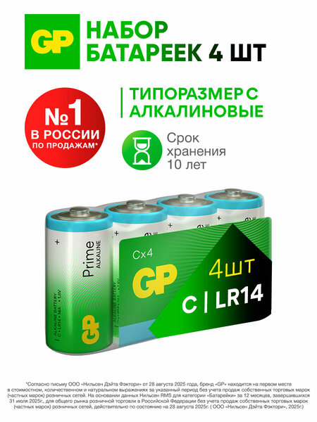 Батарейки Prime Alkaline бренда GP – это универсальные и надежные элементы питания для различных электронных устройств. Они работают безупречно в самых разных ситуациях, делая вашу технику по-настоящему эффективной. Батарейки типоразмера C с высокой энергоемкостью изготавливаются по новой формуле для более надежной и продолжительной работы устройств. Современные гаджеты стали неотъемлемой частью нашей жизни: MP3-плееры, наручные часы, цифровые камеры, энергоемкие электро аппараты, фотоаппараты, фотовспышки, микрофоны, игровые консоли, фонари - все они нуждаются в энергии. Комплект из четырех штук мощных щелочных батарей отличного качества обеспечивает высокую производительность и эффективное использование беспроводного гаджета дома, позволяя наслаждаться играми и аудио. Такая новинка также идеальна для детских игрушек и пультов для них: автомобилей на радио управлении, игрушечных роботов и других. Батарейки LR14 ( 14APA21-2CRSWC4 ) - это не только надежное питание для приборов, но и супер выбор для качественной работы электроники: смарт-часы, напольных бытовых весов, детекторов дыма, радионянь, электробритв, радиоуправляемых моделей разных типов. Премиум батареи, которые работают на марганцево-цинковой системе, справятся с любыми задачами. Это хороший подарок или подарочный набор на праздники, который оценят мужчины и женщины, парни и девушки всех возрастов. Официальная продукция ГП отличается экономичностью и долговечностью. Щелочной наполнитель имеет низкий саморазряд, устойчивость к окислению. Большим плюсом является работа при низких и высоких температурах. При производстве не используются вредные вещества. Экологичность продукции при ее эксплуатации и утилизации — один из приоритетов компании. При установке одноразовых батареек в прибор следует строго соблюдать полярность, не стоит устанавливать новые элементы питания вместе с уже использованными. Все батарейки торговой марки GP сертифицированы согласно российскому стандарту ГОСТ и международным стандартам ISO9001 и ISO14001.