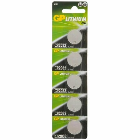 GP CR2032-7CR5 5шт — литиевые элементы питания формата "таблетка", предназначенные для устройств с низким энергопотреблением, включая часы, калькуляторы, пульты ДУ, медицинские приборы и игрушки.