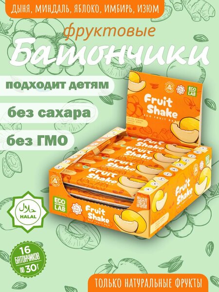 ✨ Fruit Shake Дыня — яркий вкус лета с полезным послевкусием! Этот батончик удивит вас с первого укуса: сочная дыня, хрустящий миндаль, сладковатое яблоко и изюм — всё это завершается лёгкой пряной ноткой имбиря, создавая необычную вкусовую композицию. Без сахара Без глютена Без консервантов Сертификат Халяль Вес 30 г | 101 ккал Это не просто перекус — это мгновение, которое заряжает. Будьте в тонусе в течение дня и балуйте себя натуральным вкусом, который нравится и телу, и вкусовым рецепторам.