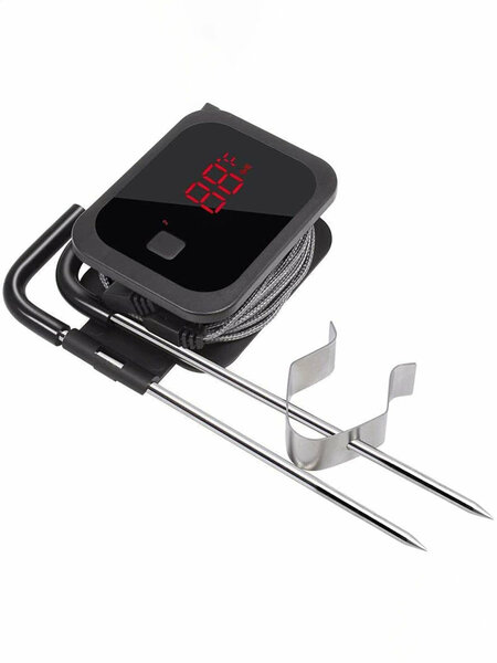 IBT-2X - это умный термометр для приготовления пищи, который подключается к вашему смартфону через Bluetooth. Он разработан, чтобы сделать приготовление пищи простым и удобным. Этот продукт поставляется с двумя датчиками из нержавеющей стали, пригодными для пищевых продуктов, которые позволят контролировать температуру ваших блюд в режиме реального времени. В приложении уже заданы настройки для работы с 8 основными продуктами для барбекю. Также есть возможность задавать необходимую температуру самостоятельно. Вы можете задать настройки таймера или установить температурный будильник. У термометра есть таймер обратного отсчета, что очень удобно, если вы хотите регулярно проверять температуру во время приготовления или вам нужно знать температуру в определенное время. Сигнал таймера имеет 2 режима громкости, устройство и телефон активируют сигнал при достижении заданной температуры. Размер корпуса: 64x85x25 мм, длина сенсора: около 120 мм. Толщина щупа около 4мм Задняя сторона не имеет магнита, батареи в комплект не входят! важная информация для любителей копчения! Термозонды данного термометра изначально не предназначены для работы в пароконвектоматах и похожих устройствах, которые используют различные режимы сочетания пара и принудительной конвекции для приготовления пищи, из-за недостаточной степени герметизации! Попадание влаги во внутрь термощупов приводит к их быстрому выходу из строя! Для того что бы этого не происходило, необходимо дополнительно герметизировать термозонды высокотемпературными термоусаживаемыми кембриками! Данные кембрики можно приобрести отдельно!