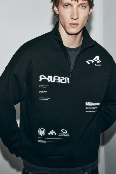 - Мужская худи-зипка свободного кроя из мягкого и плотного трикотажа на основе хлопка с принтом, артикул BF2613123012 - Воротник-стойка с V-вырезом на молнии. Длинные свободные рукава с эластичными манжетами в рубчик и спущенной линией плеча. Присборенный нижний край на эластичной резинке в рубчик - Худи на молнии с принтом из новой весенней коллекции станет базой аутфитов на несколько сезонов. Стильный и суперудобный джемпер на молнии для расслабленных повседневных образов. Сочетай его с трендовыми вельветовыми брюками или широкими джинсами и создавай стильные уличные луки, которые никогда не выйдут из моды. Большая и уютная толстовка на молнии с молнией на груди — мастхэв любого гардероба. - Размер на модели: L