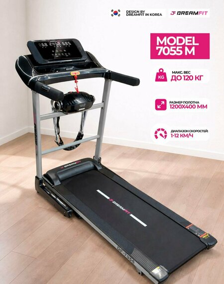Беговая дорожка DF-7055 — Профессиональные тренировки дома Беговая дорожка DF-7055 — это современный тренажёр, предназначенный для эффективных и комфортных тренировок в домашних условиях. Мощный двигатель, широкое беговое полотно и умные функции делают занятия безопасными, результативными и увлекательными. Основные характеристики: