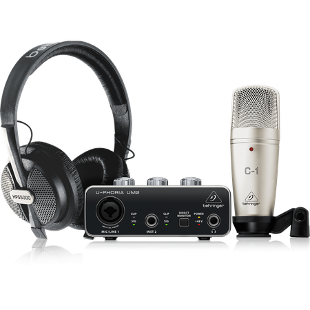 Behringer U-Phoria Studio - комплект для домашней звукозаписи. В состав комплекта входит двухканальный USB-интерфейс U-PHORIA UM2, микрофон конденсаторного типа C-1, студийные наушники HPS5000, микрофонный кабель XLR, кабель USB, а также держатель для микрофона. Аудиоинтерфейс работает со звуком в высочайшем качестве, что делает комплект идеальным выбором профессионалов. Микрофон С-1 имеет большую диафрагму и эффективную систему преобразования сигналов, что обеспечивает устройству оптимальную линейную амплитудно-частотную характеристику. Наушники HPS5000 можно использовать как в домашней студии звукозаписи, так и для прослушивания музыки. Наушники обеспечивают ровное, сбалансированное и детализированное звучание в частотном диапазоне от 20 до 20 000 Гц. Комплект представляет собой полноценную студию звукозаписи прямо «из коробки» с высокими техническими показателями. Характеристики: