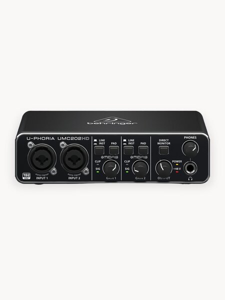 Достоинства:Хороший аудиоинтерфейс, лучший в ценовом сегменте. За счёт хорошего предусилителя отлично расскачивает наушники. На сегодняшний день самый доступный 24 битный аудиоинтерфейс, не считая китайских ноунеймов, которые по качеству звука явно уступают ему. Микрофон использую Behringer B1, эта связка даёт отличный звук по отличной цене. У микрофона есть функция мониторинга, то есть, вы можете слушать себя через микрофон в реальном времени, но ее реализация так себе, об этом напишу в минусах. Недостатки:как я уже писал выше у функции мониторинга есть существенный недостаток. сигнал транслируется только в одно ухо и для кого то это будет некомфортно, например для меня. У старшей модели UMC404HD этот недуг отсутствует, но и стоит она конечно дороже.