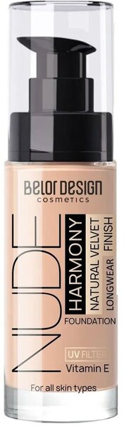 Тональный крем NUDE HARMONY действует в совершенной гармонии с кожей. Обладает стойким покрытием средней плотности, естественным образом разглаживает текстуру кожи, скрывает несовершенства и делает тон лица идеально ровным, оставляя бархатистый финиш на весь день. Одновременно с созданием совершенного внешнего вида продукт адаптируется под любой тип кожи, матирует Т-зону и увлажняет другие части лица, позволяя достичь уникального эффекта «второй кожи». Входящий в состав Бетаин и Витамин Е стимулируют выработку коллагена и поддерживают необходимый уровень влаги, благодаря которым кожа становится эластичной и шелковистой. УФ-фильтр защищает от вредного воздействия солнечных лучей. Без отдушек.