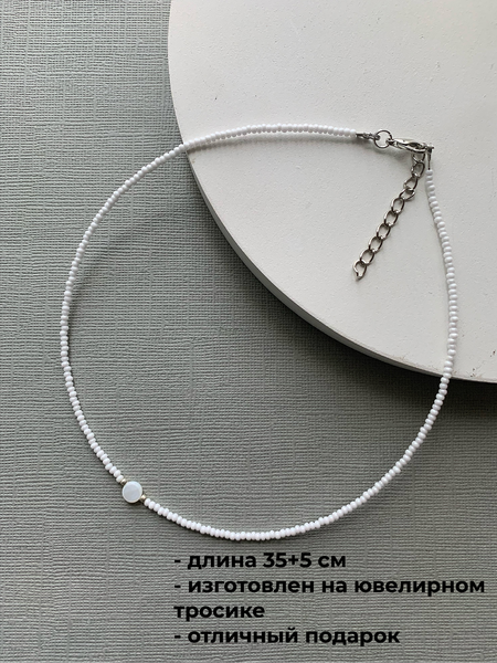 {"widgets":{"@card/ReasonToBuy":{"/content/page/fancyPage/defaultPage/reasonToBuy":{"wrapperProps":{"margins":{"right":"2"}}}}},"meta":{"/content/page/fancyPage/defaultPage/reasonToBuy":{"name":"@card/ReasonToBuy"}},"collections":{"reasonToBuy":{"1978937934689598235":{"title":[{"type":"icon","value":"ai_filled"},{"type":"delimiter","value":"NORMAL"},{"type":"literal","value":"Бисерное плетение","feature":"redesign"}],"prosAndCons":{"title":"Market AI","subtitle":"Еще учусь и могу ошибаться. Beta","pros":{"title":"В отзывах это хвалят","reasons":["Бисерное плетение","Длина 35 см","Минималистичный вид","Аккуратные бусинки","Подходит для подарка","Белый перламутр","Универсальный чокер","Удобная застежка","Нежный внешний вид"]}}}},"businessRatingStats":{"1978937934689598235":{"roundedRating":5,"ratingValue":4.800000190734863,"ratingCount":320,"ratingCountVisualization":"320","shopName":"SIDORINA SOFIA ACCESSORIES","transitionId":"tr_16409389426544268567","rating":"4.8","description":"(320) · 1.1K купили","ratingStar":"5","descriptionList":["(320)","1.1K купили"]}},"sins":{"isSins":false,"isCRSins":false,"integrationType":"go"}}}