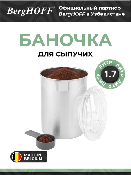 {"widgets":{"@light/ProductM2bEdoOnlyBadge":{"/content/page/fancyPage/defaultPage/m2bEdoOnlyBadge":{"wrapperProps":{"margins":{"top":"2"}},"isM2bEdoOnlyEnable":false}}},"meta":{"/content/page/fancyPage/defaultPage/m2bEdoOnlyBadge":{"name":"@light/ProductM2bEdoOnlyBadge"}},"collections":{"views":{"defaultOffer":"vi_8468354808408440502_bi_14285942330571154582"},"viewItem":{"vi_8468354808408440502_bi_14285942330571154582":{"id":"vi_8468354808408440502_bi_14285942330571154582","composeId":"8468354808408440502","buyOptionId":"bi_14285942330571154582"}},"buyOption":{"bi_14285942330571154582":{"id":"bi_14285942330571154582","title":"BergHOFF - Баночка для сыпучих Studio Line 1,7л арт. 3700069","offerId":"zEnP-xnHACXvxaac7lCPvQ","slug":"berghoff---banochka-dlya-sypuchikh-studio-line-17l-art-3700069","trackingLinks":{"cpa":"/gxhwmWLXER8t0oYgu1YBF5UdERKI","promotionUrl":"/9UtR15BxB0seA-BT6YK2QUzcqYw4"},"skuId":"4480771243","productId":"1247310156","categoryId":"62015934","navnodeId":"62015935","departmentId":"54422","showUid":"17716396882195704422606001","counterStep":1,"minimum":1,"maximum":15,"price":{"value":537400,"currency":"UZS"},"vendorId":"7161568","feeShow":"OTNDnItfwRMlLJby2gHopd8aIENmVm8aoMPuRdcosyrvgBYWAVqyGAAMKY4HKR6qN4TtCSvxNikM-MLNNuRgjsmB-U8QjhChf5pSJauFX0KizQqC4yZPFU5SOt0pfZVQyRwwcqEQCAgi9DAWvzKHwx3ogBu3u_nhOmPQvqTfTJN3bYskBo225fsbHN0MLbOwRmUiBJ1imO7e7Nv0SfEz_C7JUkDvwcB8phIvyMOl-I7lU_CBM2WPMCvpHzzocBZgTeB3FXYyY1xMK4r-itLyEONRppuHOKVvlRxDED5Ee0cpEoS0OrxbJA,,","feedId":"51372061","feedOfferId":"51372061.3700069","shopId":"431782","supplierId":"198218406","businessId":"198218411","supplierName":"Sabono","businessName":"Sabono","hasAnySize":false,"hasAnyDelivery":true,"benefitTypeCode":"waremd5","flags":["isVisual","isFbs","isPartialCheckoutAvailable"],"analytics":{"warehouseId":"1748136","paymentType":"ANY","atSupplierWarehouse":true,"paymentMethodTypes":["BY_CARD_ONLINE","BY_CARD_TO_COURIER","IN_CASH"],"deliveryOptions":[{"deliveryType":"delivery","fromDate":1774404488,"toDate":1774404488,"priceInfo":{"value":0,"currency":"UZS"}},{"deliveryType":"pickup","fromDate":1774404488,"toDate":1774404488,"priceInfo":{"value":0,"currency":"UZS"}},{"deliveryType":"pickup","fromDate":1774404488,"toDate":1774404488,"priceInfo":{"value":0,"currency":"UZS"}}],"shopSku":"3700069","placementType":"3P","ownMarketPlace":true,"shopSlug":"yandex-market","yandexBnplInfo":{"enabled":true},"hypeBadge":{"hasBadgeRare":false}},"deliveryType":"DELIVERY","imageMeta":{"namespace":"mpic","groupId":5253277,"key":"2a0000019b9fe490cbceb5b4227bb09b9343"}}},"market2Business":{"current":{"id":"current","isM2b":false}}}}