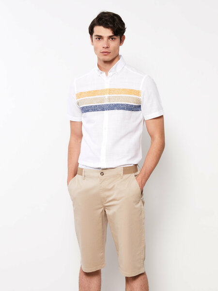 Бермуды для мужчин от известного бренда LC Waikiki - это сочетание комфорта и стиля. Бермуды изготовлены из габардина - тонкой ткани, состоящей на 97% из хлопка и на 3% из эластана. Это обеспечивает мягкость, эластичность и долговечность изделия. Однотонный бежевый цвет бермуд подойдет к любому образу и станет отличным дополнением к вашему гардеробу. Уход за бермудами прост и не займет много времени. Стирка при максимальной температуре 30°C, без использования отбеливателя, барабанная сушка запрещена, глажка при низкой температуре и химическая чистка - все это поможет сохранить качество и внешний вид бермуд на долгое время. Выбирая бермуды для мужчин от LC Waikiki, вы получаете стильное и качественное изделие, которое прослужит вам долгое время и станет незаменимым элементом вашего гардероба.