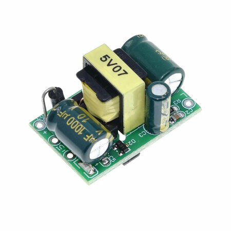 Модуль имеет защиту от перенапряжения / превышения допустимого тока или мощности / короткого замыкания. Вход 220 В (AC) промаркирован на печатной плате "L / N" и/или знак "~", выход промаркирован "V / V1" и/или знаки "+" / "-". Обратите внимание, данный модуль не предназначен для подключения индуктивной нагрузки, такой как электродвигатели и т. п. Размеры модуля: 3×2.1×1.5 см.