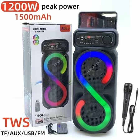 Беспроводная Bluetooth-колонка Savdo belgisi Yo'q, RGB-подсветка, пульт ДУ, 1200Вт