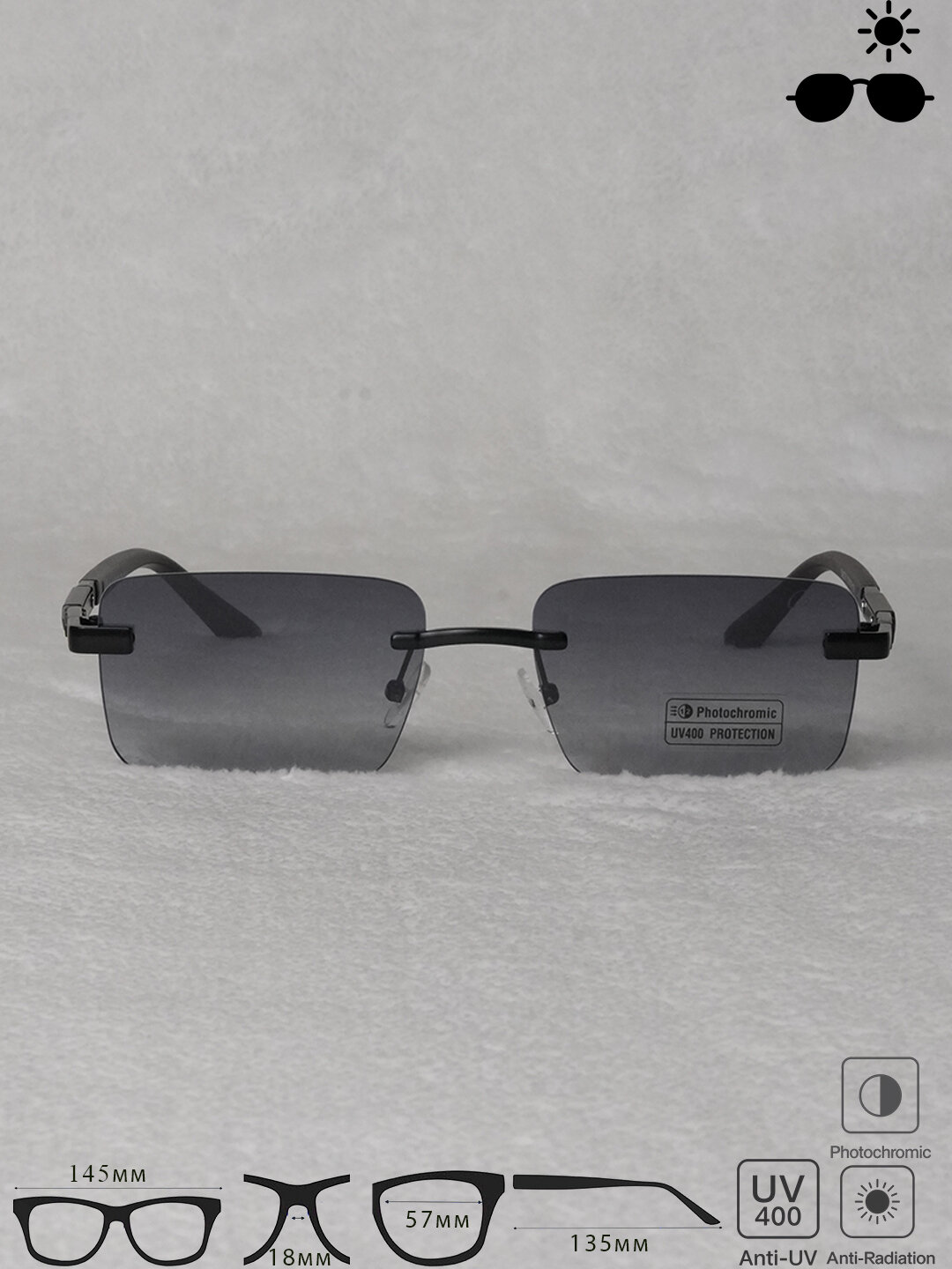 Солнцезащитные очки. Стильный аксессуар созданный для комфортного ежедневного ношения. Модель оснащена Photochromic эффектом Anti-Radiation защитой и UV400, а также благодаря управляемыми носоупорами обеспечивают удобную посадку и надёжную фиксацию на лице.