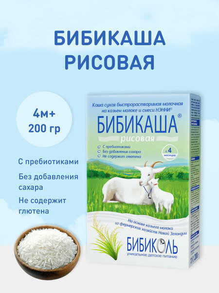 Каша от торговой марки Бибикаша создана на основе высококлассной рисовой крупы органико-биологического происхождения и сухого цельного новозеландского козьего молока. Продукт является источником положительно влияющей на работу кишечника клетчатки. Каша содержит комплекс пребиотиков, нормализующих кишечную микрофлору и обеспечивающих профилактику запоров. Кашка приготовлена без сахара и соли, что позволит с детства сформировать у малыша привычку к здоровому питанию. Рисовая крупа содержит 8 незаменимых аминокислот, требующихся организму ребенка для создания новых клеток. Она не раздражает желудок и кишечник, а по мере продвижения по кишечнику впитывает вредные вещества и выводит их из организма. Каша подходит для питания малышей с непереносимостью белков коровьего молока и риском развития пищевой аллергии. Состав: органическая рисовая мука, сухое цельное козье молоко, адаптированная молочная смесь нэнни (сухое цельное козье молоко, лактоза, растительные масла (каноловое, подсолнечное, кокосовое и высокоолеиновое подсолнечное), холинхлорид, антиоксидант подсолнечный лецитин, таурин, карнитин, минера¬лы (цитрат натрия, гидроксид кальция, лимонная кислота, сульфат железа, сульфат цинка, сульфат меди, сульфат марганца, селенит натрия), витамины (аскорбиновая кислота, dl-a-токоферол ацетат, ниацинамид, витамин DЗ, ацетат ретинола, кальций-D-пантотенат, гидрохлорид тиамина, цианокобаламин, витамин К1, гидрохлорид пиридоксина, рибофлавин, биотин, фолиевая кислота, концентрат смеси токоферолов)), мальтодекстрин, пребиотические волокна (инулин и олигофруктоза), карбонат кальция, аскорбиновая кислота, пирофосфат железа, dl-a-токоферол ацетат, ниацинамид, кальций-D-пантотенат, гидрохлорид пиридоксина, ацетат ретинола, рибофлавин, мононитрат тиамина, йодат калия, биотин, витамин DЗ, цианокобаламин.