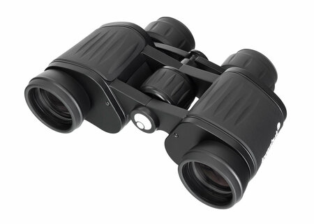 апертура 35 мм, диоптрийная коррекция, линзы из стекла BK-7 с полным просветлением, призмы Порро, регулировка межзрачкового расстояния, увеличение 7 крат, широкоугольный бинокль с полем зрения 157 м на дистанции 1000 м
