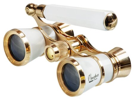 Классическая галилеевская оптическая схема с центральной внутренней фокусировкой, заключенная в белый лакированный корпус с позолоченными (18к) элементами. Трехкратное увеличение и широкое поле зрения позволят вам насладиться представлением даже с галерки. Телескопическая длина ручки 10 -16 см.