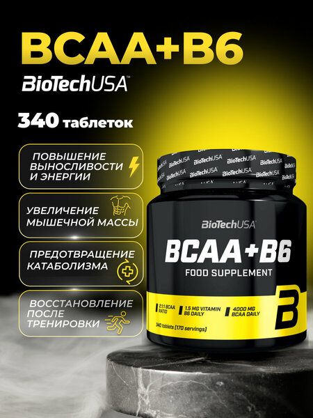 BCAA+B6 BioTechUSA — аминокислотный комплекс БЦАА в таблетках 2:1:1 Что это за BCAA BCAA+B6 от BioTechUSA — спортивная добавка из аминокислот с разветвлённой цепью: лейцин, изолейцин и валин в соотношении 2:1:1. Это три незаменимые аминокислоты, которые организм не синтезирует сам и получает с питанием. Формат таблеток удобен тем, кто выбирает спортпит без вкусовых добавок и хочет точную дозировку. Состав и дозировки · Суточная порция: 4 таблетки (в упаковке 100 порций) · BCAA 2:1:1 — 4000 мг, включая: лейцин 2000 мг, изолейцин 1000 мг, валин 1000 мг · Витамин B6 — 1,5 мг (106% NRV) · 1 г BCAA в 1 таблетке Продукт gluten-free и GMO-free. Зачем добавлен витамин B6 Витамин B6 (пиридоксин) участвует в нормальном обмене белка и гликогена, поддерживает энергетический обмен и способствует снижению усталости и утомляемости. Это делает комплекс BCAA+B6 уместным в рационе при регулярных тренировках и активном образе жизни. Как принимать Ориентируйтесь на порцию с упаковки: обычно до тренировки, после или разделив приём на 2 части в течение дня. В дни отдыха — вместе с едой или между приёмами пищи, чтобы поддерживать регулярность поступления нутриентов. Кому подходит Подходит тем, кто использует спортивное питание в силовых тренировках, фитнесе и нагрузках на выносливость. Также актуально, если в рационе временно снижен белок или вы хотите аккуратно закрывать потребность в незаменимых аминокислотах без лишних добавок. Совместимость BCAA+B6 обычно сочетают с базовыми продуктами спортпита: сывороточным протеином, креатином, комплексами витаминов/минералов — при условии соблюдения рекомендованных порций и общего баланса питания. Важные ограничения Не используйте при индивидуальной непереносимости компонентов. При заболеваниях почек/печени, во время беременности/ГВ, а также подросткам — лучше обсудить приём со специалистом.