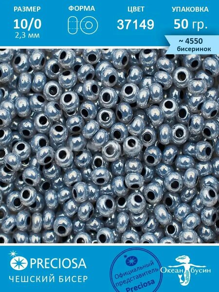 Бисер чешский Preciosa, для бисероплетения, стекло, круглый, серый, 37149 10/0