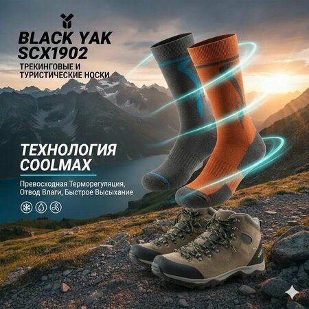 носки Black Yak SCX1902 высокие для трекинга, и путешествий. . Из CoolMax создает эффективную терморегуляцию, не давая ногам перегреваться, ткань эффективно испаряет влагу и быстро сохнет.