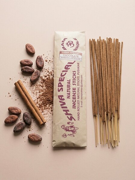 Благовония-палочки бренда "Shiva Special" производятся в Индии. Полностью натуральные, ручной работы. В упаковке 30 шт. Аромат палочек "Chocolate" - сладкий, терпкий. Шоколад объединяет три теплые сладковатые ноты — какао, сандал и муск. Они звучат уютно, успокаивающе, мило, а тончайшая горчинка добавляет запаху глубину. Cоздает атмосферу тепла и доверия, благотворно влияя на отношения в семье. Индийское благовоние "Шоколад" снимает нервное напряжение и эмоциональную усталость, дарит ощущение покоя и комфорта, пробуждает светлые чувства и воспоминания. Это замечательное курение для дома и подходящий аромат для свиданий, романтичный, мягкий и сближающий. В практиках индуизма эти благовония идеально подойдут для почитания Ганеши и любых божеств в их детской ипостаси — например, юного Кришны (Бала-Кришны), Муругана, Ханумана.
