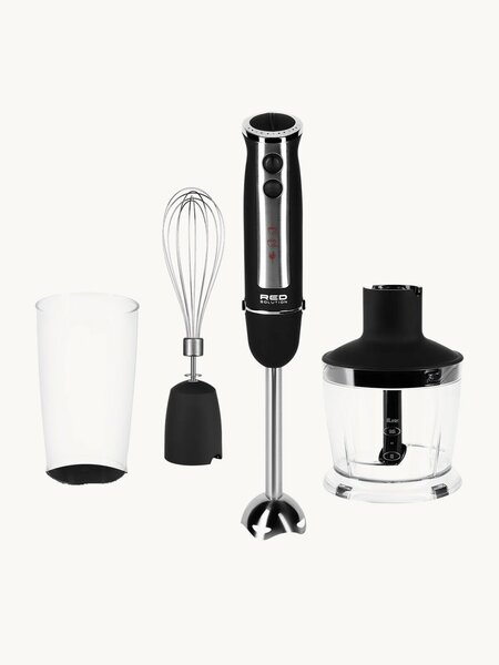 Блендер RHB-2908 от RED SOLUTION - необходимый помощник на вашей кухне Мощность и скорость в ваших руках Если вы ищете многофункциональный блендер для своей кухни, то RHB-2908 - отличный выбор. Благодаря своей мощности в 1200 Вт и нескольким насадкам, это устройство может помочь вам приготовить широкий спектр блюд, включая смузи, коктейли, пюре, супы и многое другое. Погружной блендер RHB-2908 имеет пять скоростей, которые переключаются удобно, легко, а главное - плавно, а также режим “Турбо”. Всё это позволяет настроить устройство под любую задачу. Лаконичный дизайн Компания RED SOLUTION уделяет большое внимание дизайну своих устройств, и блендер RHB-2908 не является исключением. Черный цвет, сочетающийся с металлическими элементами, придает блендеру элегантный и лаконичный вид, который будет дополнять любой интерьер кухни. Надежность и долговечность Прибор оснащен лезвиями из нержавеющей стали, которые легко справятся со всеми видами продуктов и останутся острыми и блестящими максимально долго. Каждый блендер RED SOLUTION оснащен двойной защитой двигателя от перегрева и перегрузки для максимальной безопасности. Это значительно продлевает срок службы устройства. А гарантия на 12 месяцев обеспечит вам дополнительное спокойствие и уверенность в качестве домашнего блендера. Дополнительные насадки Кроме того, блендер для дома RHB-2908 имеет дополнительные насадки: венчик для взбивания измельчитель. Эти насадки делают ручной блендер универсальным и помогают сэкономить место на кухне. Готовить вкусные и здоровые блюда никогда не было так просто. Используйте инновации - переходите на RED SOLUTION!